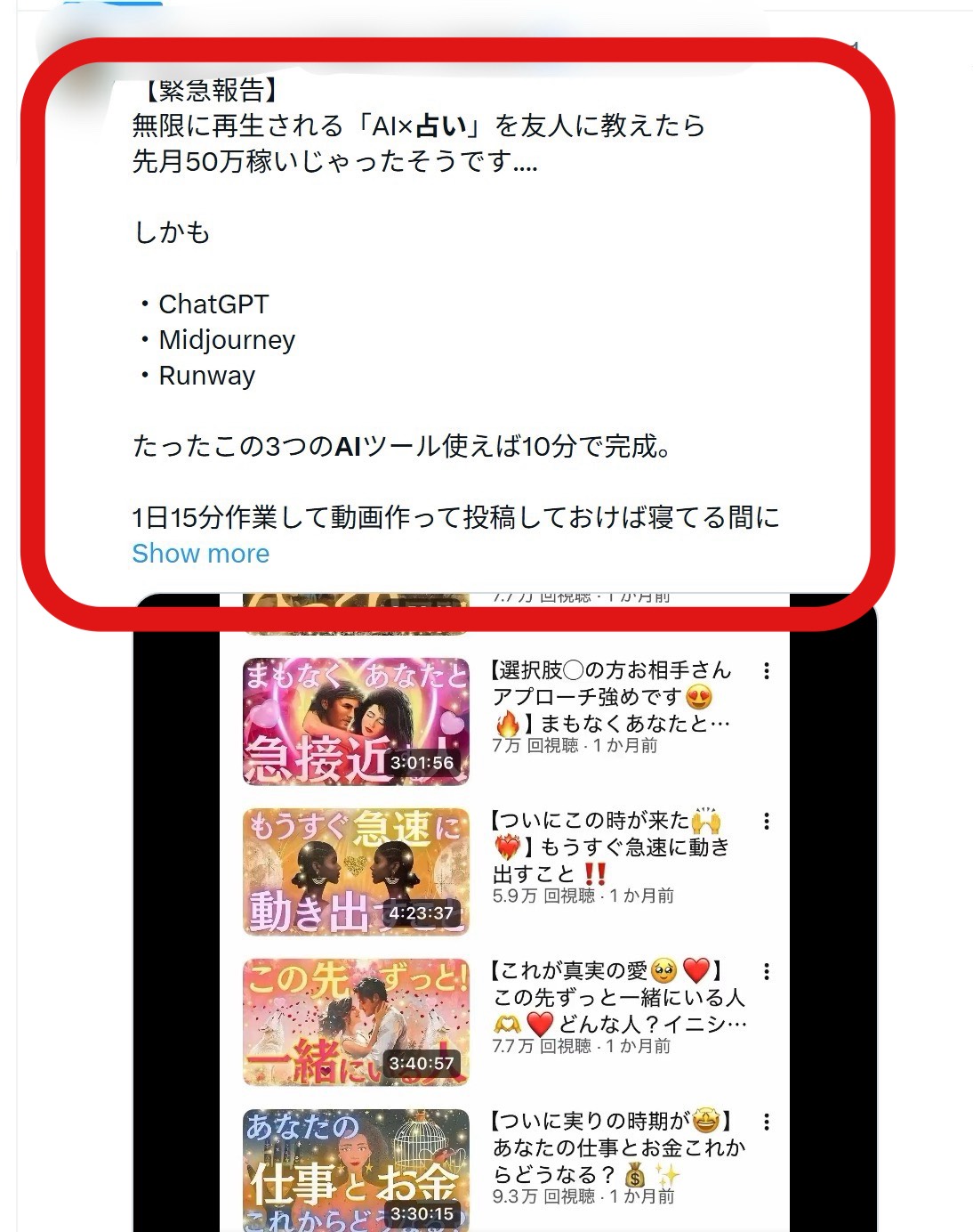AI×占い発信者で詐欺に遭いました」